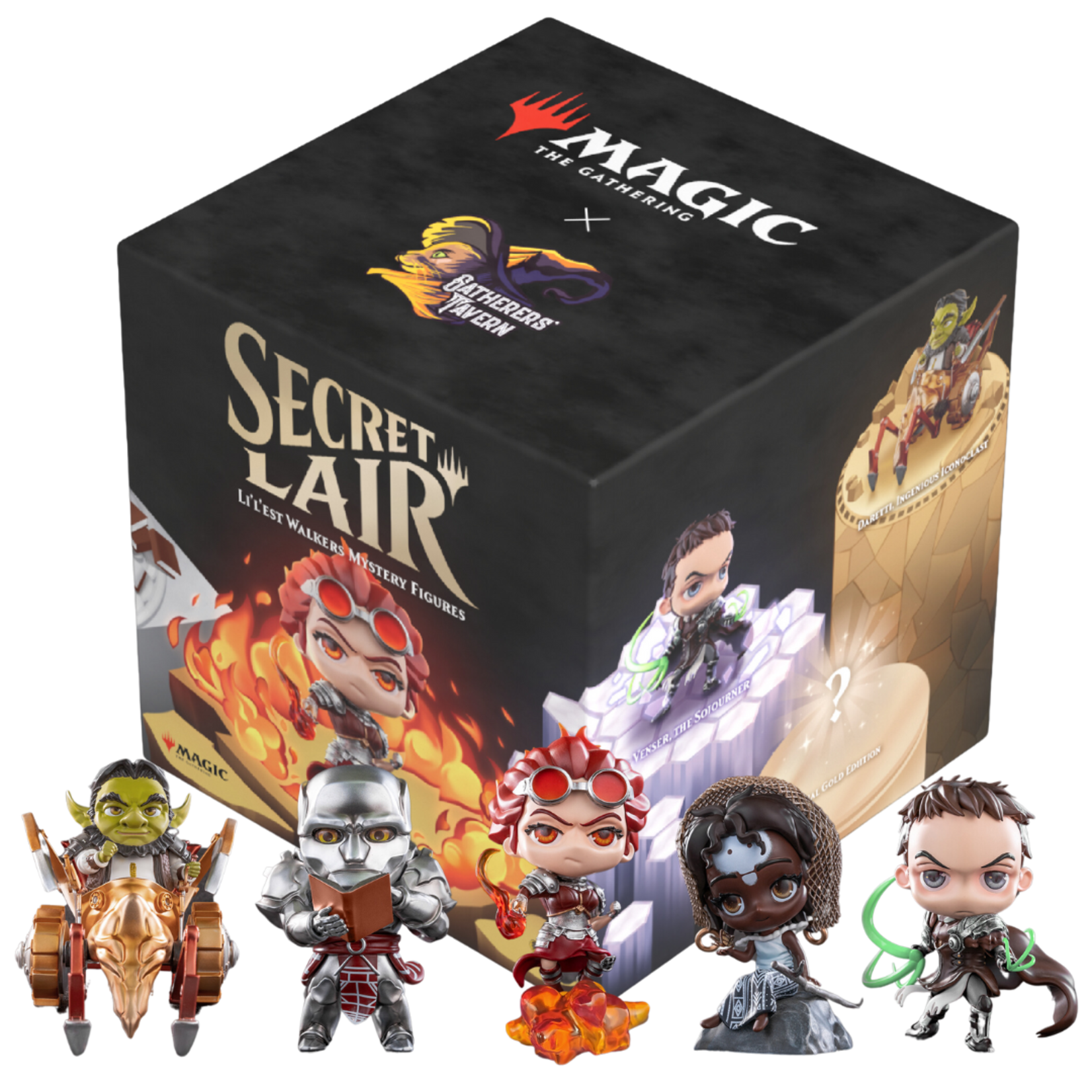 Unveil the magic of the multiverse with the newly launched Secret Lair Li'l'est Walkers Mystery Box. This set showcases five fan-favourite planeswalkers: Chandra, Daretti, Karn, Venser, and Aminatou, each meticulously crafted into enchanting mini-forms. Alongside these adorable figures, each box includes a lenticular card that animates the new Secret Lair Drop series which inspired the figures.